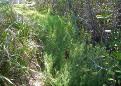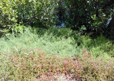 It’s a great place to weed because of the number of little birds (fairy-wrens, mangrove gerygones) that pop their heads out of the mangroves and hang out in the native shrubs. The saltwater coming up the creek with the tide helps keep the weeds down as it favours the salt-tolerant plants. They just need a little encouragement and space. N4C members have been taking care of the area, improving the value of the vegetation as habitat.